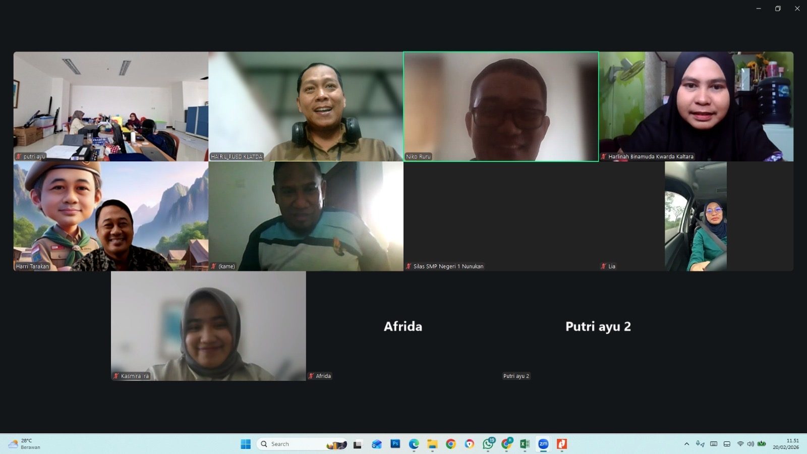 Jumat, 20 Februari 2026, Gerakan Pramuka Kalimantan Utara menggelar rapat pembahasan MoU dan PKS Program Pramuka Garuda serta Jalur Prestasi penerimaan mahasiswa baru. Rapat dihadiri Andalan Orgakum, Binawasa, Humas, Binamuda, pengurus Pusdiklatda, sebagai langkah strategis memperkuat apresiasi dan peluang pendidikan bagi Pramuka Garuda.